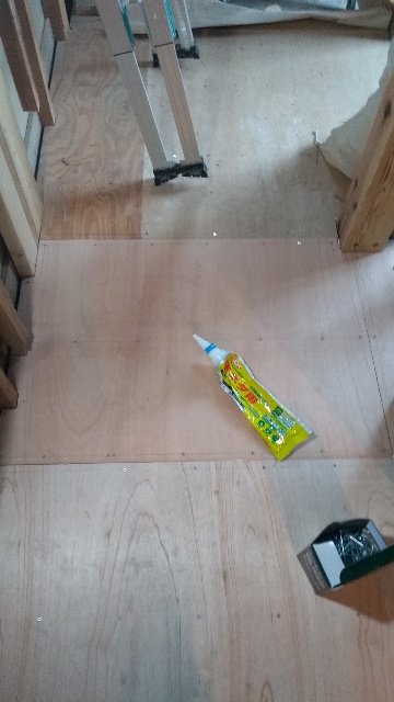 基礎天端に付け框を乗せ、そこから下に合板でCF下地を施工